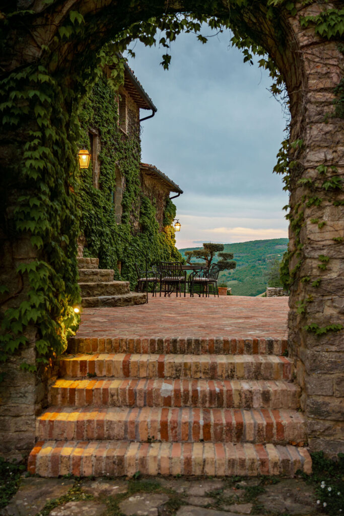 that has been meticulously restored to preserve its original character while offering the comfort and privacy of a contemporary countryside retreat. Set in a panoramic position between cypress-lined hills and olive groves, the borgo feels like stepping into a small private village, where ancient stone walls, narrow pathways, and historic architecture create an authentic sense of place.