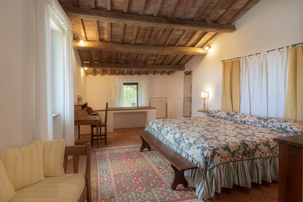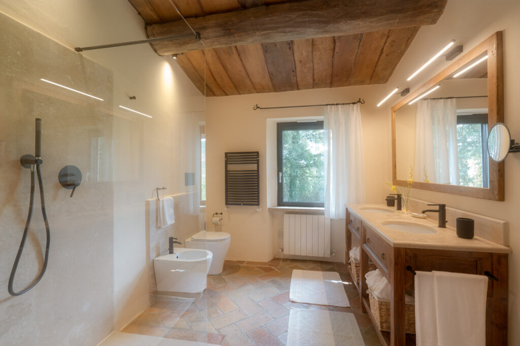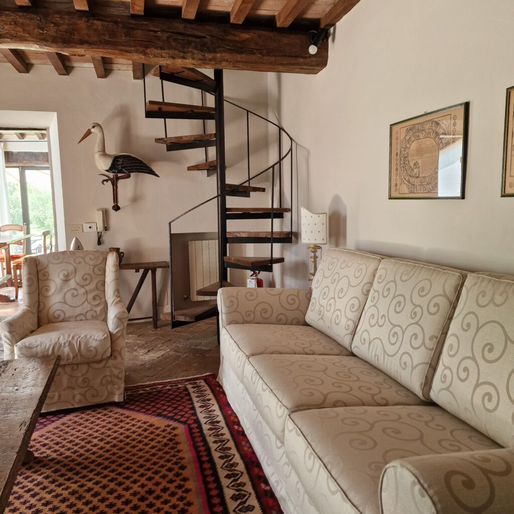 The origins of Bastia Creti date back to the medieval period, when it served as a small fortified settlement along the trade routes between Tuscany and Umbria. Today, its careful restoration highlights the beauty of its stone structures, vaulted ceilings, and original architectural details, while blending them with understated contemporary touches.