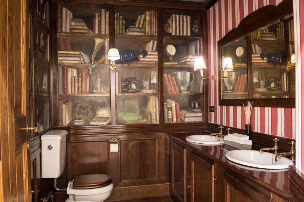 Upstairs, the Royal Suite features a canopy bed, walk-in closet, and marble bathroom, accompanied by nine additional double bedrooms, each with en-suite bathrooms. The mezzanine level offers extra flexibility for families, while the basement houses a private wine cellar, billiard room, gym, sauna, and an indoor pool with garden view — an unexpected sanctuary of wellness and leisure.