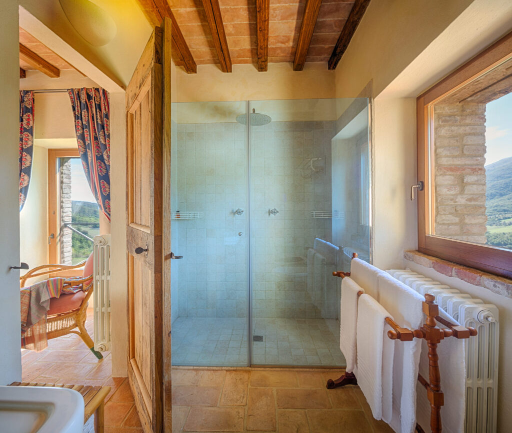 It is a property that immediately gives a sense of privacy and calm, with spaces that are easy to live in and extremely functional for families or small groups. The rooftop terrace is, for me, the highlight of the villa. It is the one spot where you feel completely immersed in the Umbrian landscape, whether you are enjoying a quiet morning coffee or a simple aperitivo at sunset.