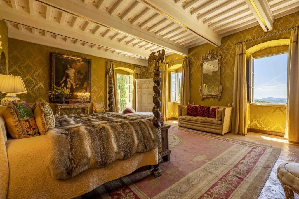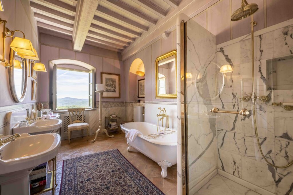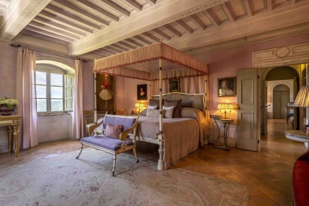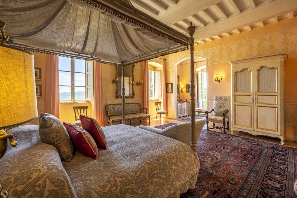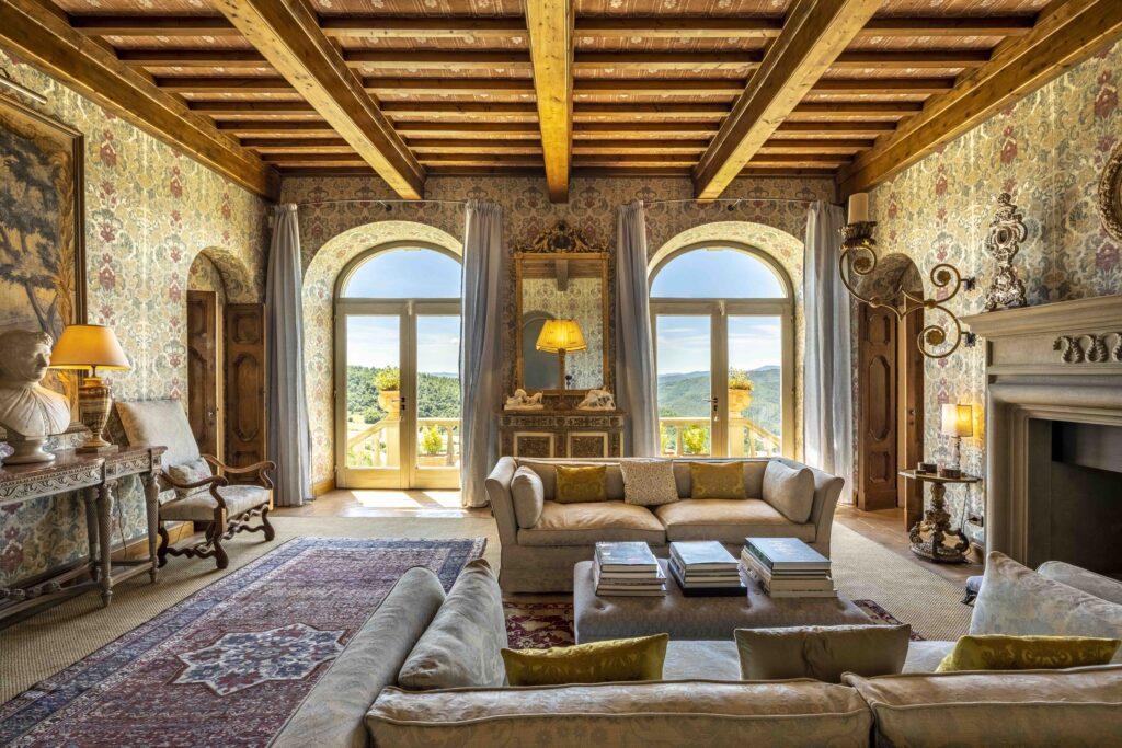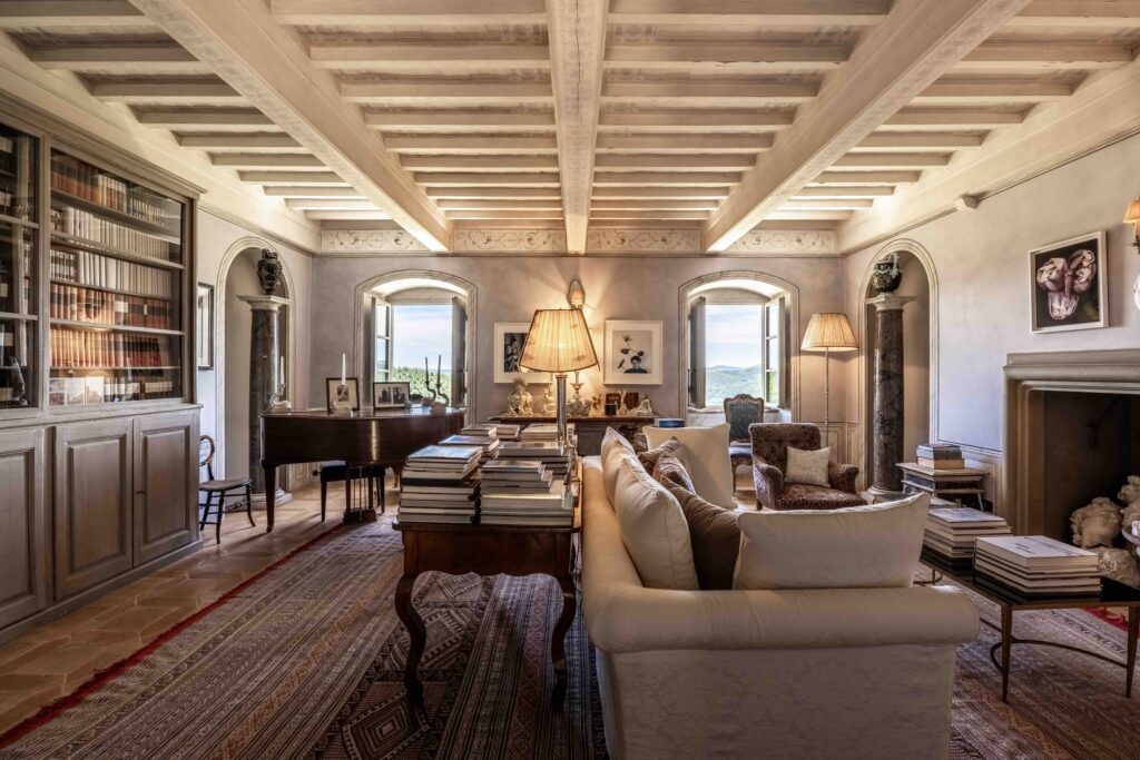the palazzo overlooks an endless panorama of rolling hills and medieval villages. From sunrise to dusk, the light shifts gently across the valley, filling the house with warmth and quiet beauty.