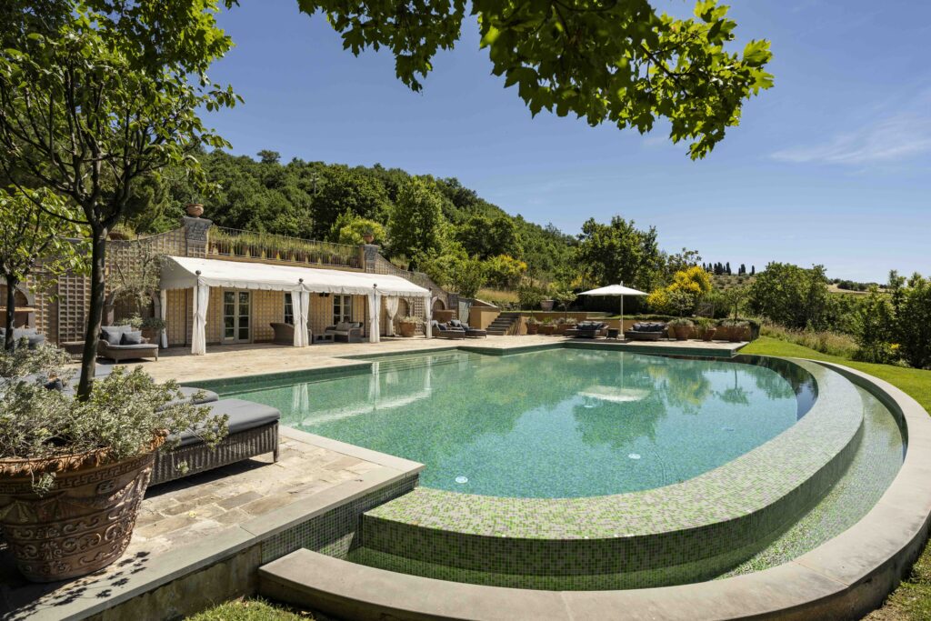 Beyond the main villa, La Palazzina, the charming guest cottage, offers additional privacy surrounded by olive trees, ideal for those who wish to experience the property with a sense of independence and quiet connection to nature.