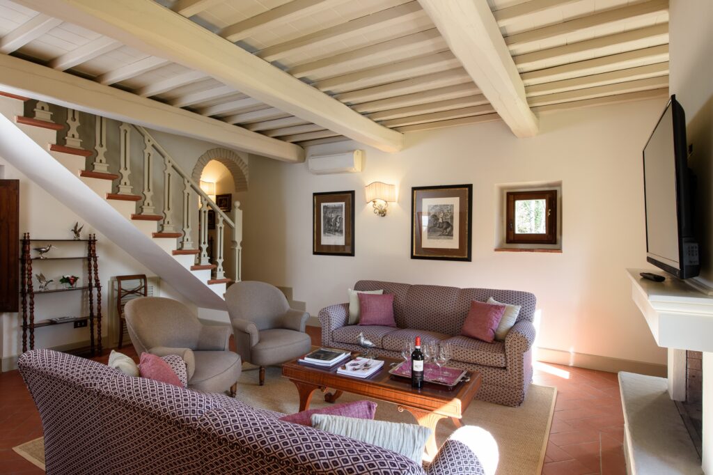The restoration has preserved the original character of the building — stone walls, wooden beams, and terracotta floors — while adding refined contemporary interiors and modern comforts. The result is a warm, welcoming atmosphere that combines Tuscan authenticity with understated elegance.