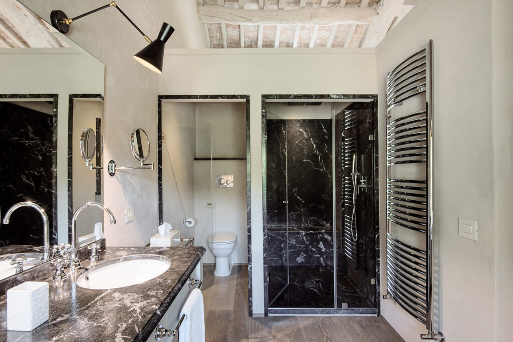 immersed in private gardens and woodland, offering total privacy and a wide, open view of the Umbrian hills. Its natural setting creates a peaceful atmosphere, with paths through the surrounding forest that invite long, beautiful walks straight from the villa.