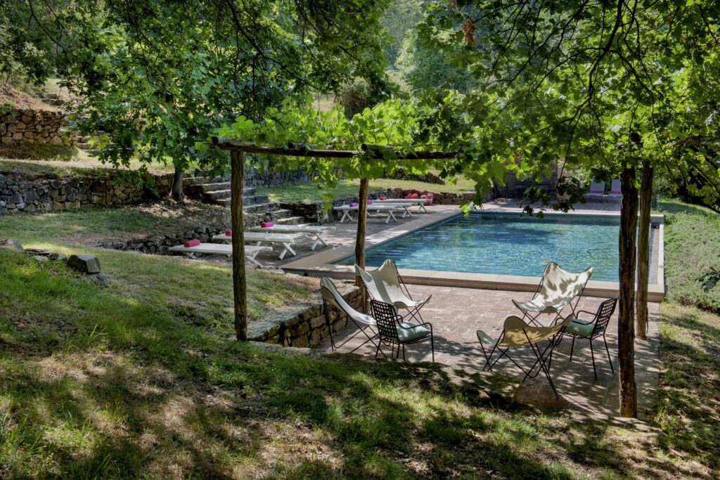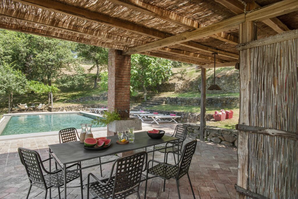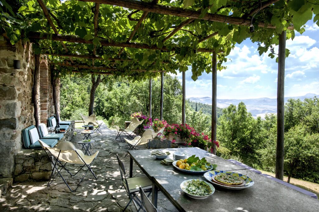 It feels private and peaceful without being isolated. It’s one of those places where mornings start slowly with views over the fields, children play freely in nature, and evenings are spent around long outdoor dinners. It has a warm, welcoming atmosphere, a real Tuscan home where you immediately feel at ease.