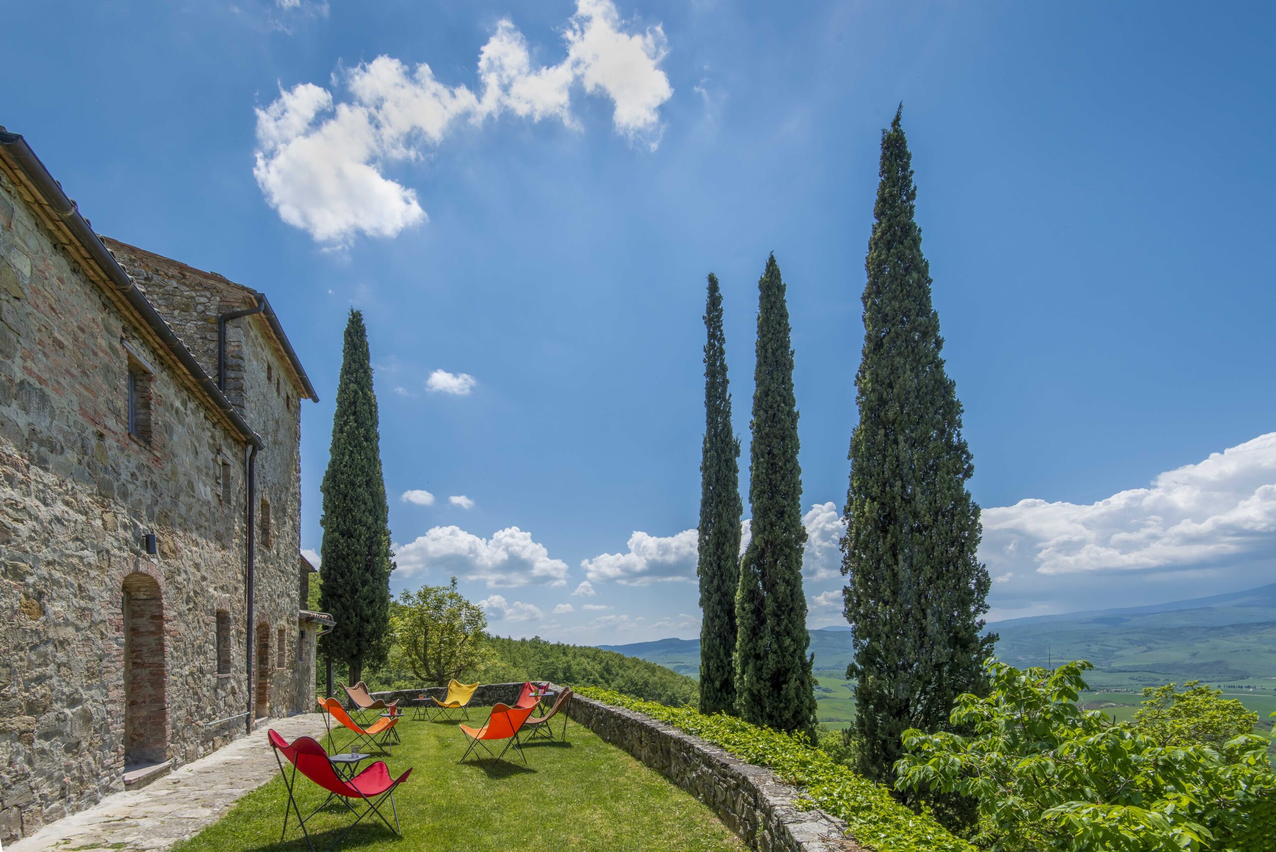 Nearby, the Crete Senesi and Chianti hills reveal another side of the region, with clay ridges, vineyards, and centuries-old farmhouses surrounded by open skies.